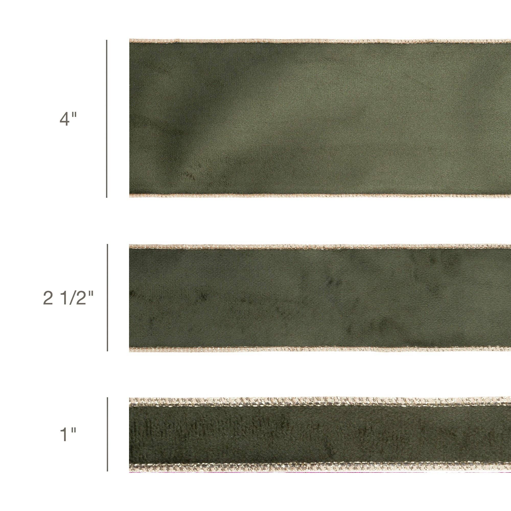 1" REVERSIBLE CLASSIC VELVET WIRED RIBBON | MOSS/GOLD | 10 YARD ROLL