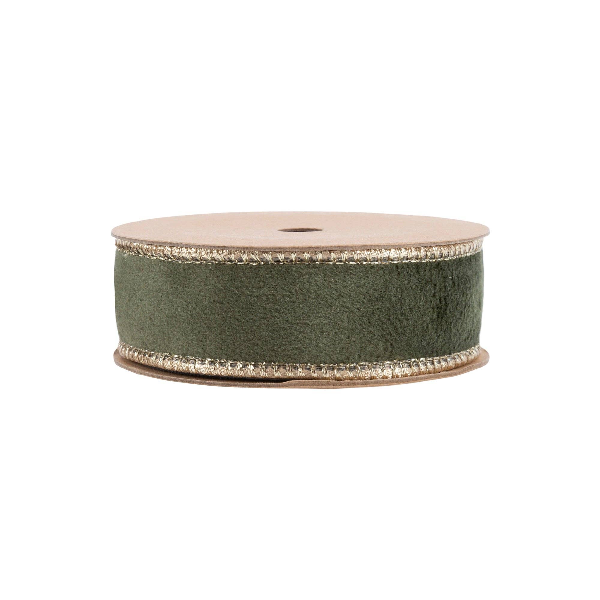 * Elegant 1" reversible velvet ribbon in a rich moss and gold color combination, perfect for adding a touch of luxury to any project. * Features a luxurious gold backing that enhances depth and contrast, making it ideal for gift wrapping, holiday decor, and special event accents. * Wired edges provide structure and flexibility, allowing for beautifully shaped bows and decorative details on a convenient 10-yard roll.