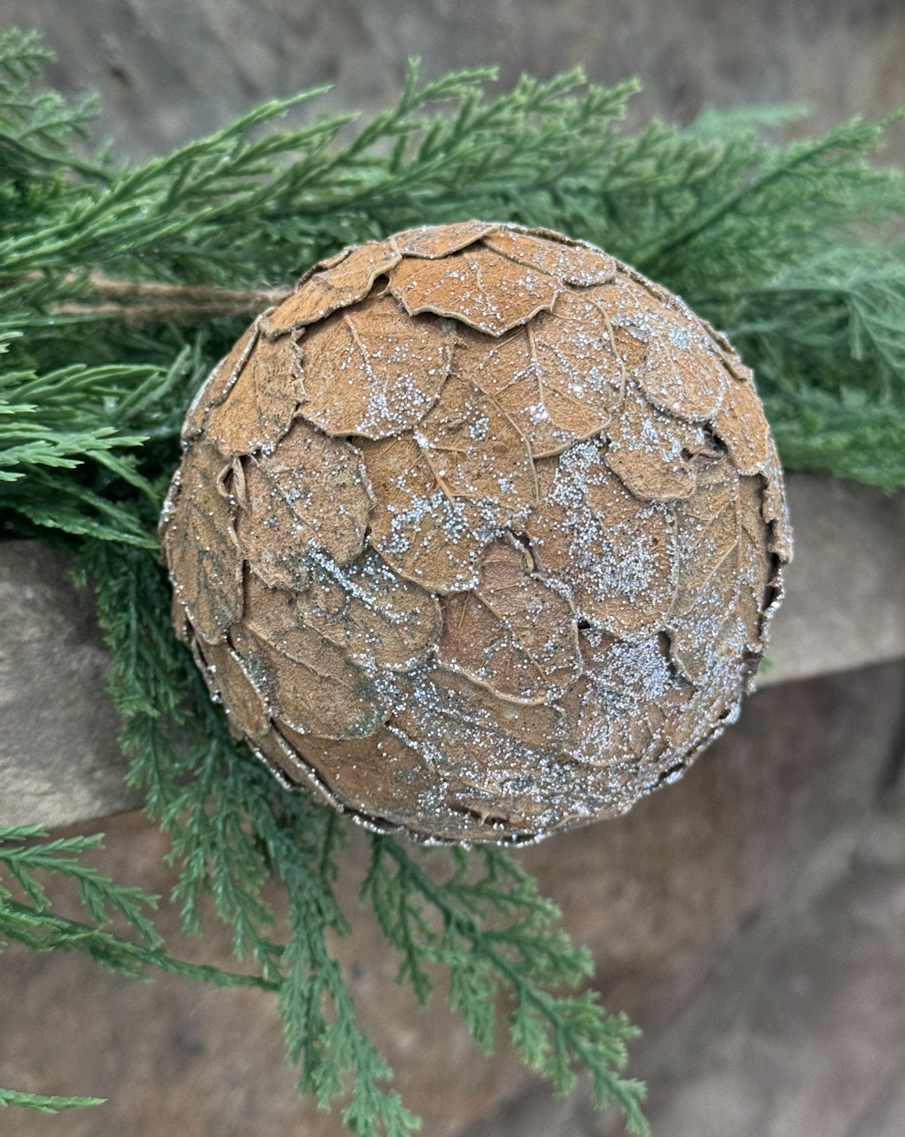Bring the beauty of nature into your holiday décor with our Rustic Wood Ball Ornament. Designed with layered wood shavings that mimic the look of pinecone petals, this ornament adds warm, organic texture to your Christmas tree, wreaths, or garlands. A subtle frosted finish dusted with glitter gives it a snowy sparkle, making it a perfect blend of rustic charm and festive elegance.
