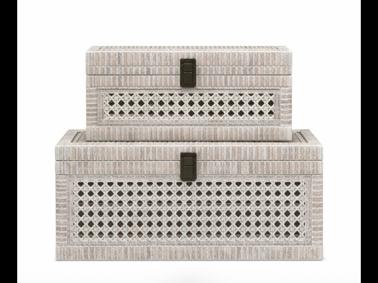 Each box is finished with a secure latch closure, making them ideal for storing everyday essentials while keeping spaces visually calm and uncluttered. Style them stacked for a designer look or separate them throughout your home for cohesive, elevated storage.